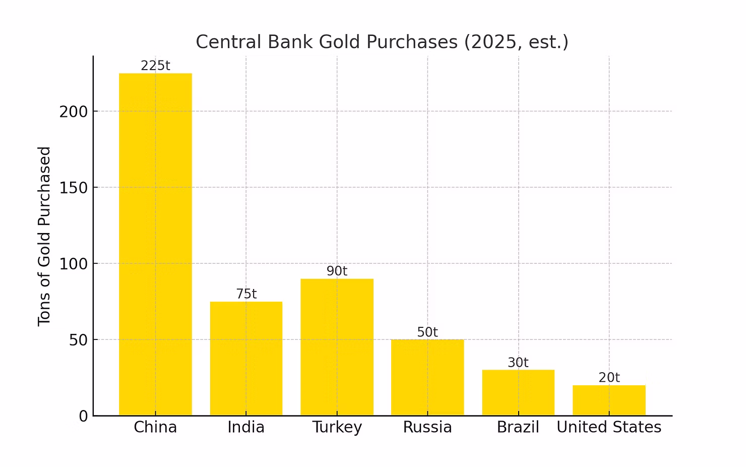 Highlights which countries are buying the most gold — China, Turkey, and India lead the pack